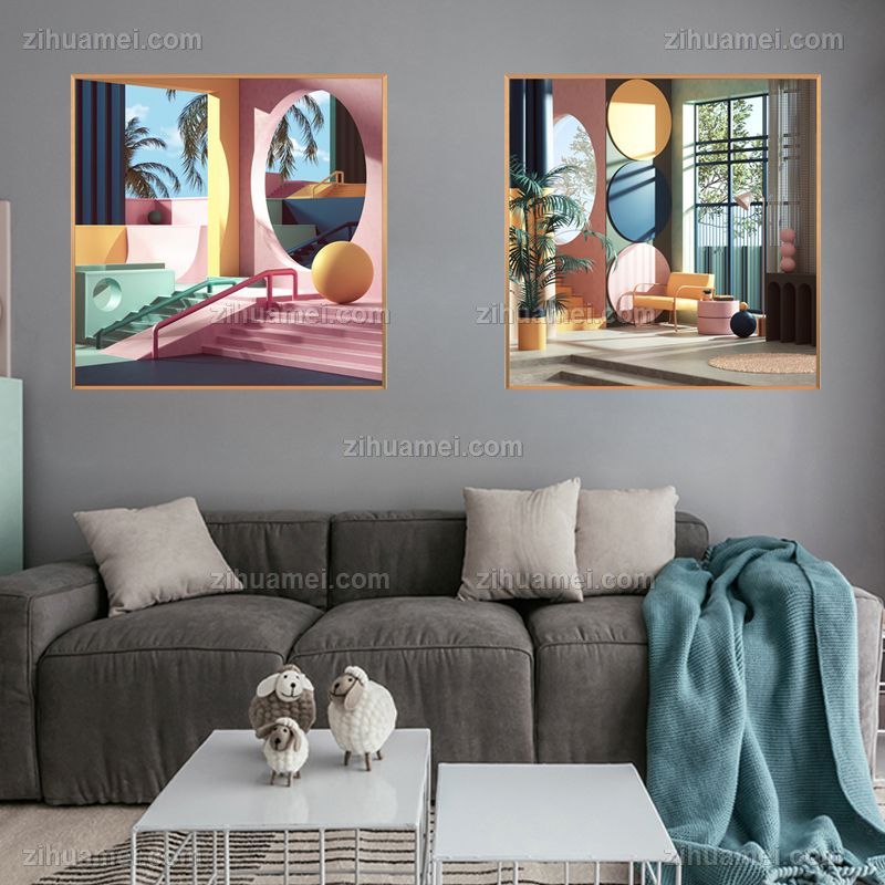 • Nordic dream space living room decorative painting Morandi sofa background wall hanging painting aesthetic decoration