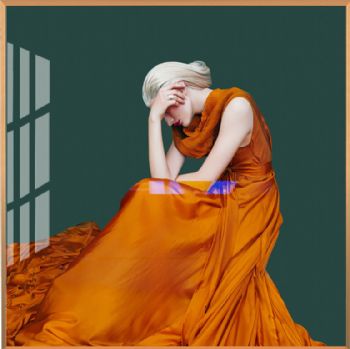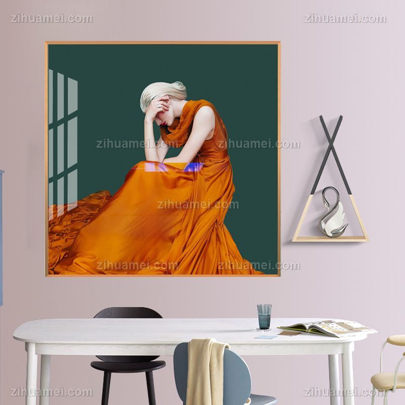 晶瓷画橙色裙子美女装饰画艺术晶瓷画晶瓷画铝合金外框画框装饰画画框