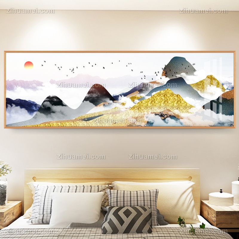 晶瓷画新中式床头挂画晶瓷画晶瓷画铝合金外框画框装饰画画框