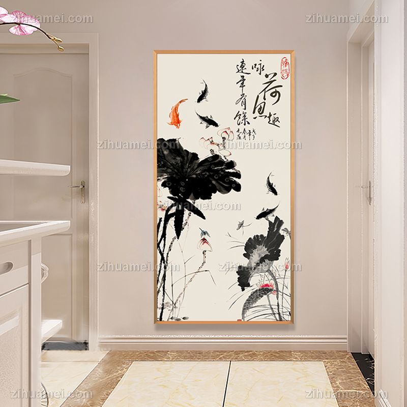 晶瓷画玄关挂画水墨国画晶瓷画晶瓷画铝合金外框画框装饰画画框