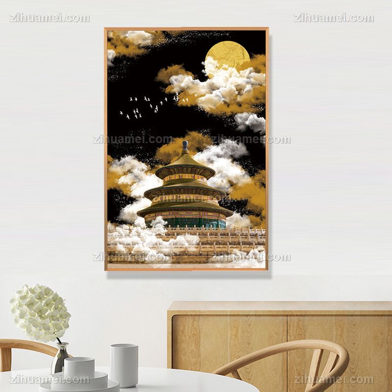 • Crystal porcelain painting New Chinese style Beijing Temple of heaven auspicious cloud high-grade light luxury decorative painting aluminum alloy frame porch corridor hanging painting