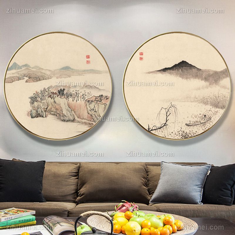 • New Chinese style high-grade classical landscape light luxury crystal porcelain decorative painting aluminum alloy duplex hanging painting