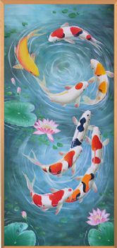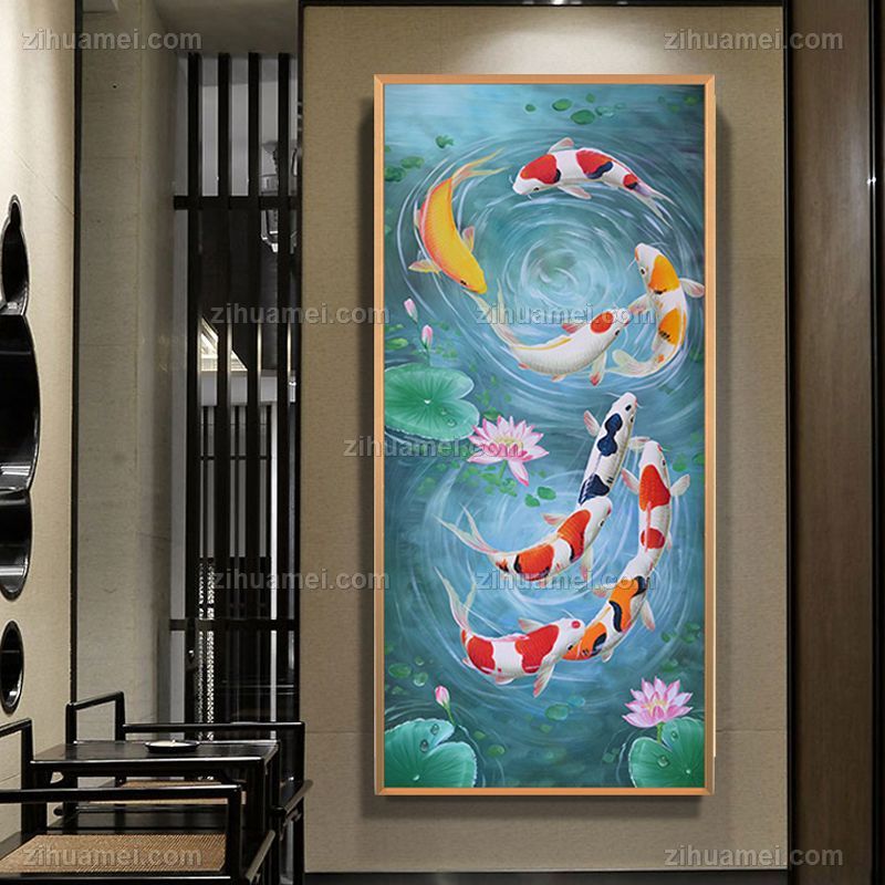 • High grade Feng Shui painting nine fish painting fortune wheel rolling light luxury crystal porcelain painting decorative painting aluminum alloy frame new Chinese hanging painting