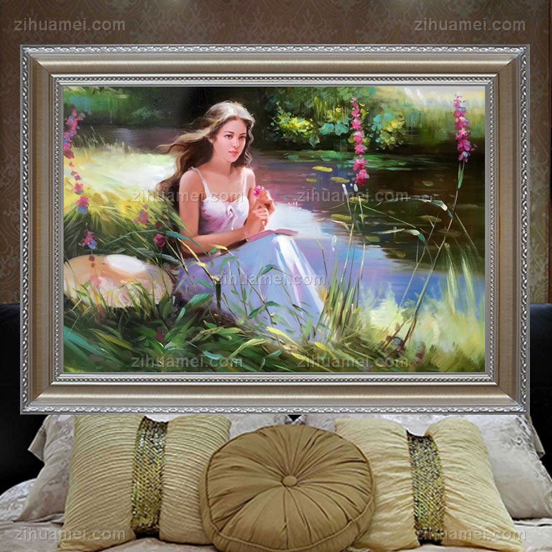 • Elegant and beautiful girl oil painting figure oil painting club decorative painting living room hanging painting bedroom hanging painting European and American figure painting porch hanging painting
