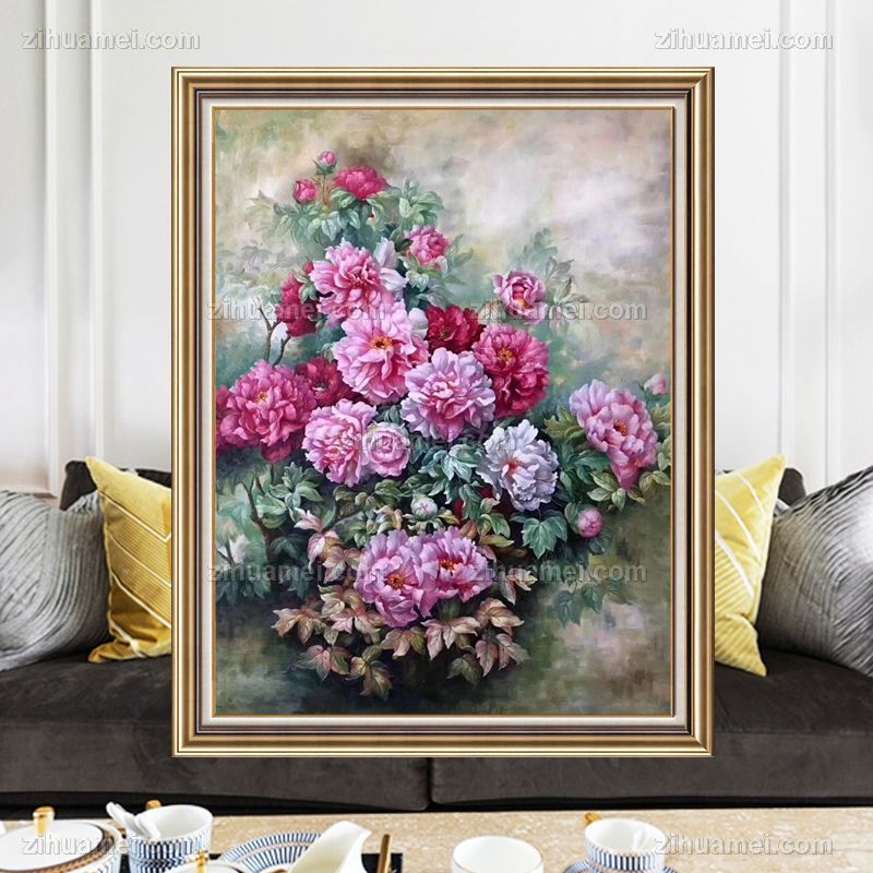 • Chinese oil painting flower and bird painting hand painted oil painting Peony painting fine oil painting hanging solid wood frame in living room flowers blooming