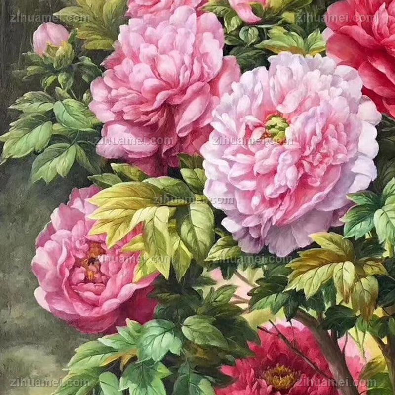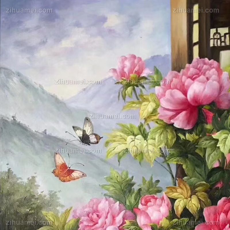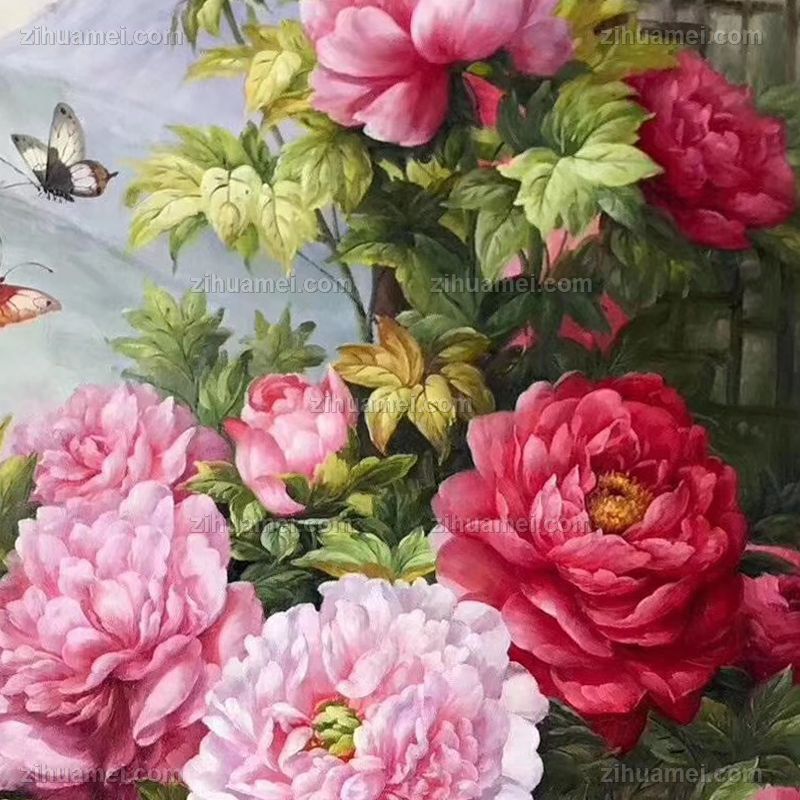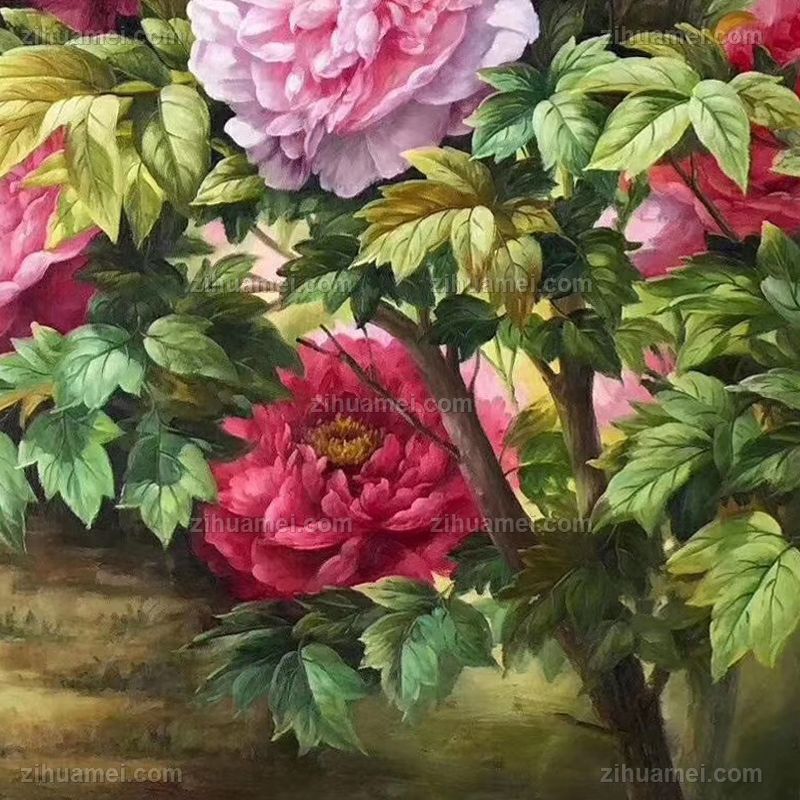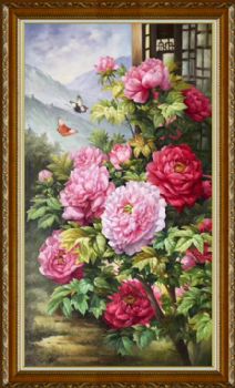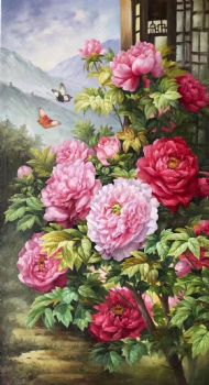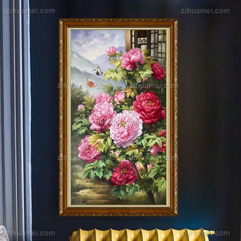• Porch oil painting in full bloom peony oil painting hand painted Chinese oil painting solid wood frame landscape oil painting