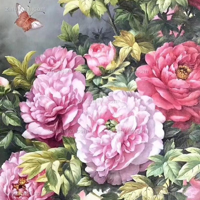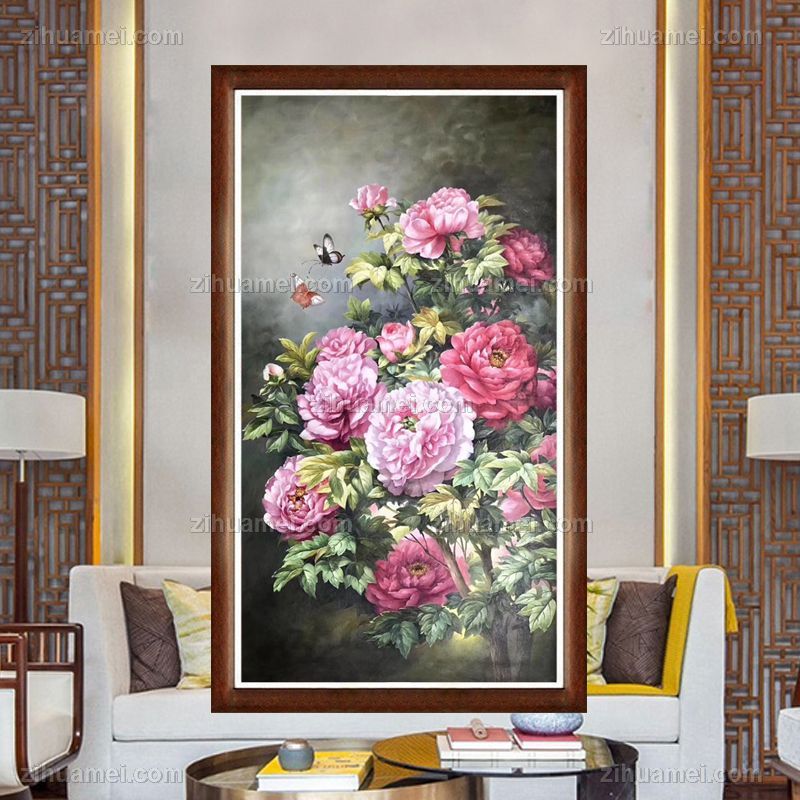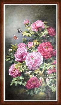 • Exquisite hand painted oil painting Chinese oil painting rich peony oil painting suitable for living room porch hanging solid wood frame