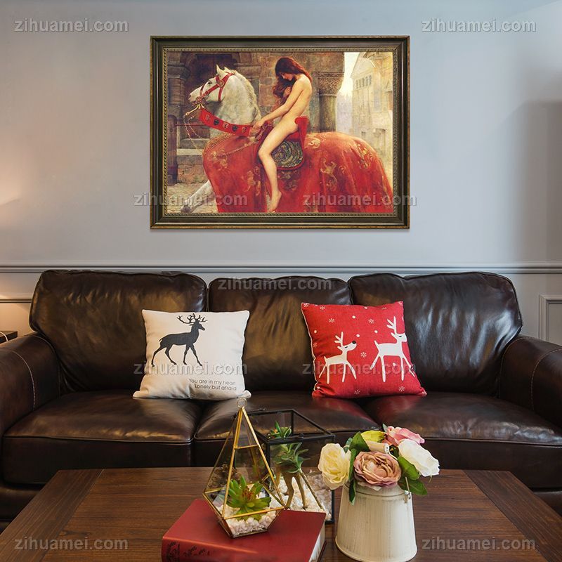 • European hand-painted oil painting figure Lady Godiva on horseback hanging painting living room mural porch decoration painting customization