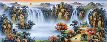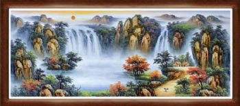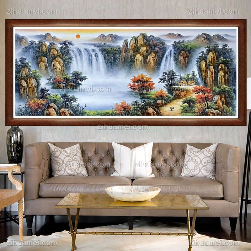 • Chinese oil painting hand painted large living room oil painting Feng Shui painting solid wood frame oil painting landscape painting