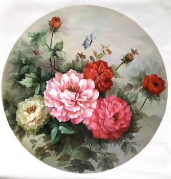 • Hand painted new Chinese oil paintingsRich and auspicious peony oil painting solid wood round frame living room porch hanging painting