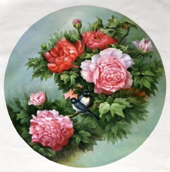 花鸟画牡丹手绘油画