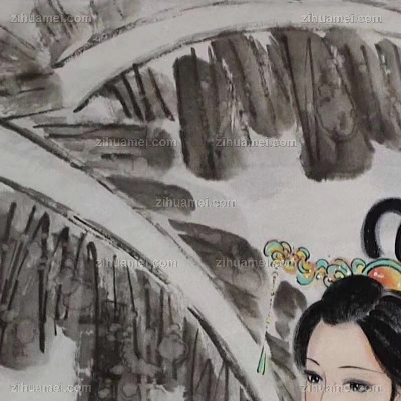 纯手绘人物画美女写意图