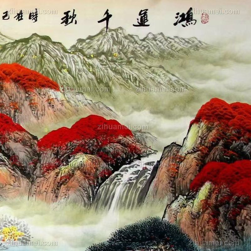 鸿运千秋适合大厅酒店客厅的水墨山水画