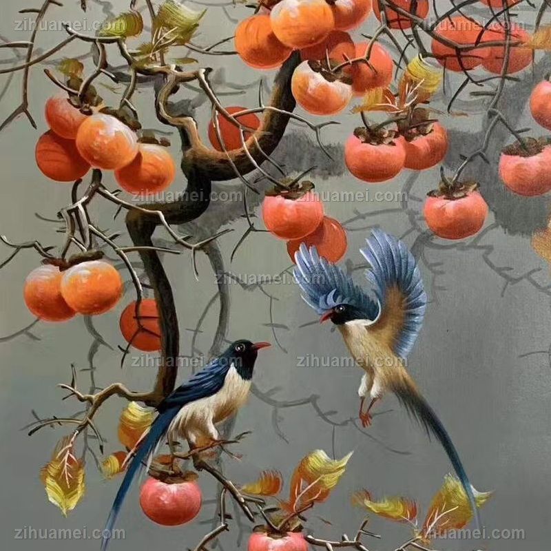 • Magpie's family has a wedding oil painting persimmon and magpie's new Chinese oil painting hand painted persimmon Ruyi