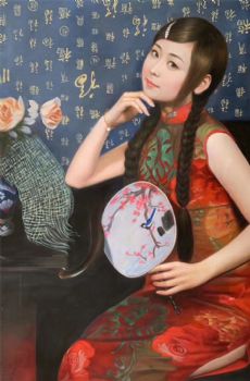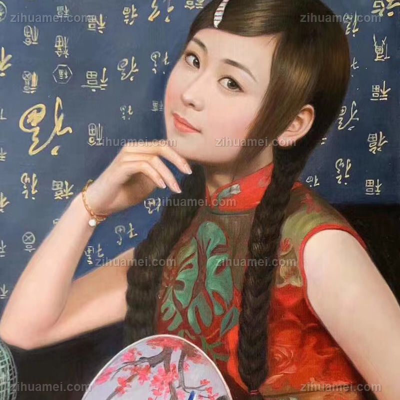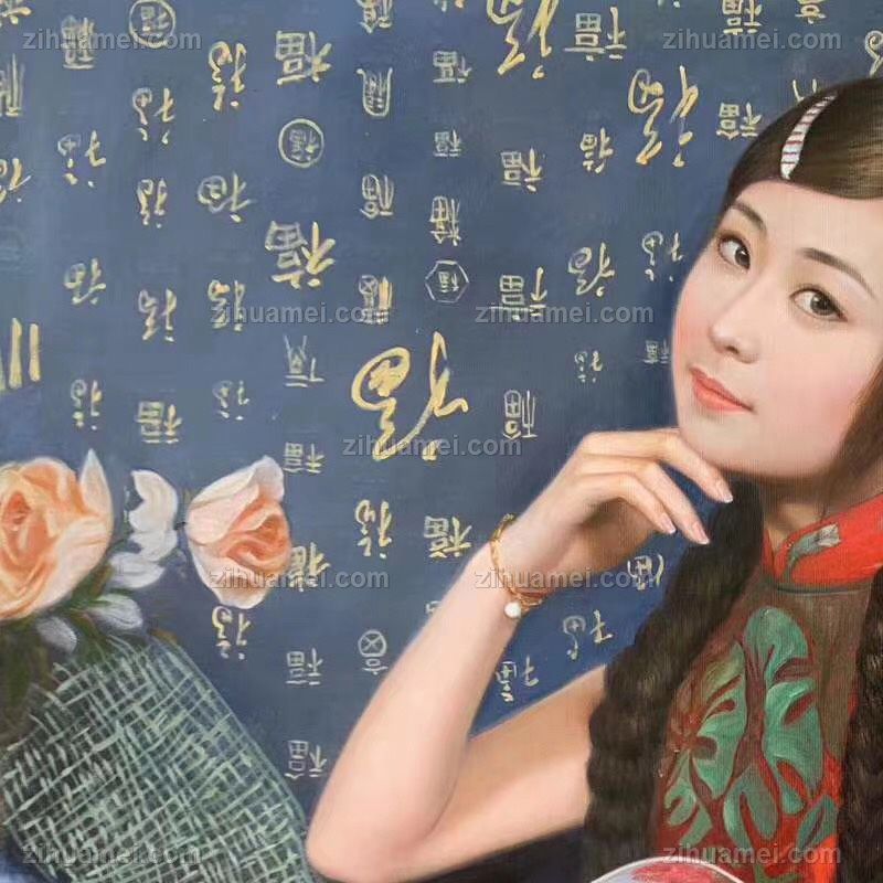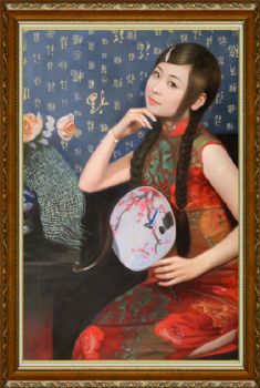 美女中式古典手绘人物油画