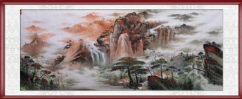 • Freehand landscape painting New Chinese style boutique mountain forest family small eight feet landscape painting Danxia landscape painting support personalized lyrics