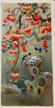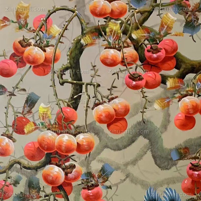 • New Chinese style oil painting pure hand painted persimmon forest persimmon persimmon happy to go to branch home have good meaning of happy persimmon and Magpie