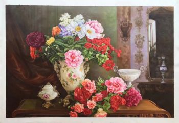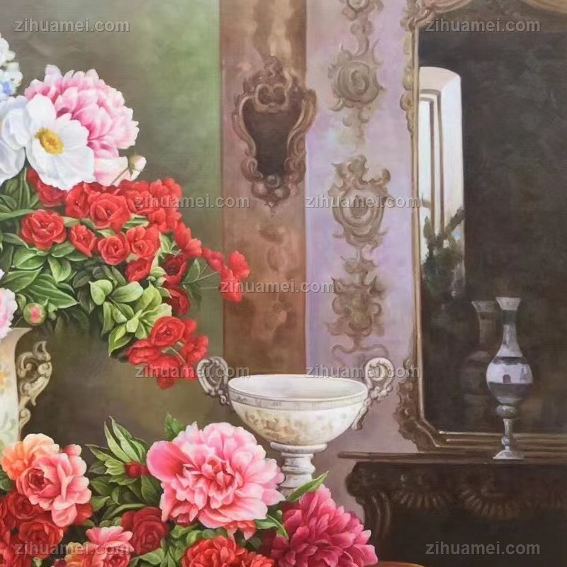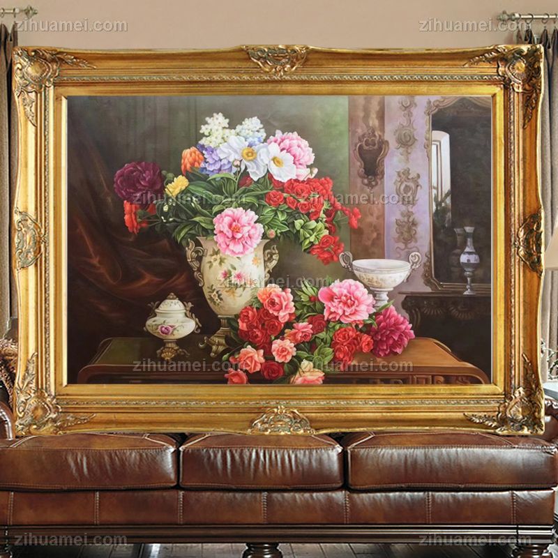 • Pure hand painted European flower oil painting high grade villa living room with solid wood corner flower frame