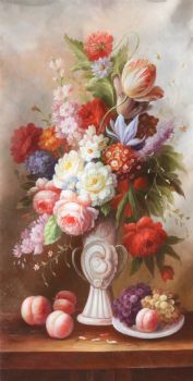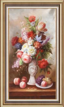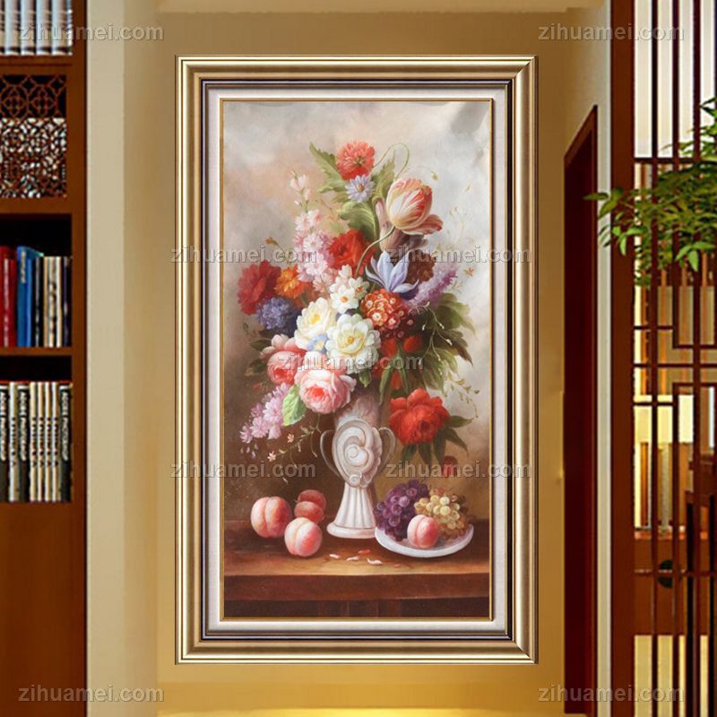 • European flower oil painting pure hand-painted oil painting fine fruit vase flower oil painting porch living room hanging painting solid wood frame