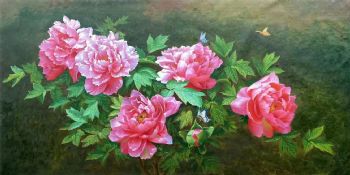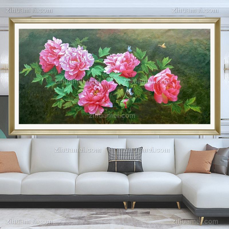 • Chinese style living room realistic flower oil painting
