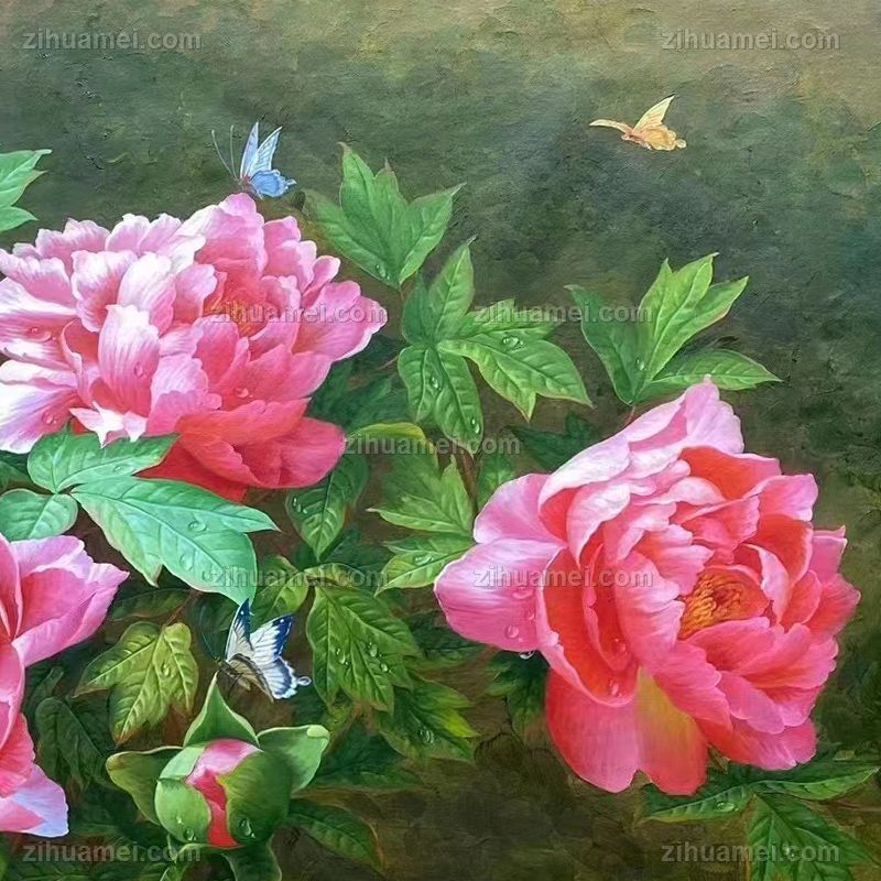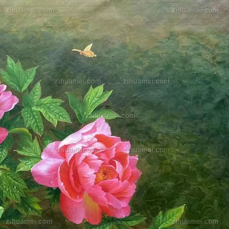• New Chinese pure hand-painted flower oil painting Peony painting living room sofa wall realistic oil painting