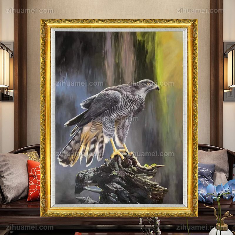 • Fine Korean oil painting pure hand-painted animal oil painting Eagle realistic oil painting always spreads its wings and flies solid wood golden European frame