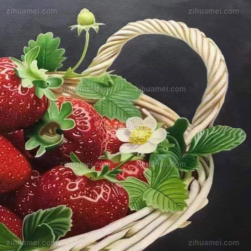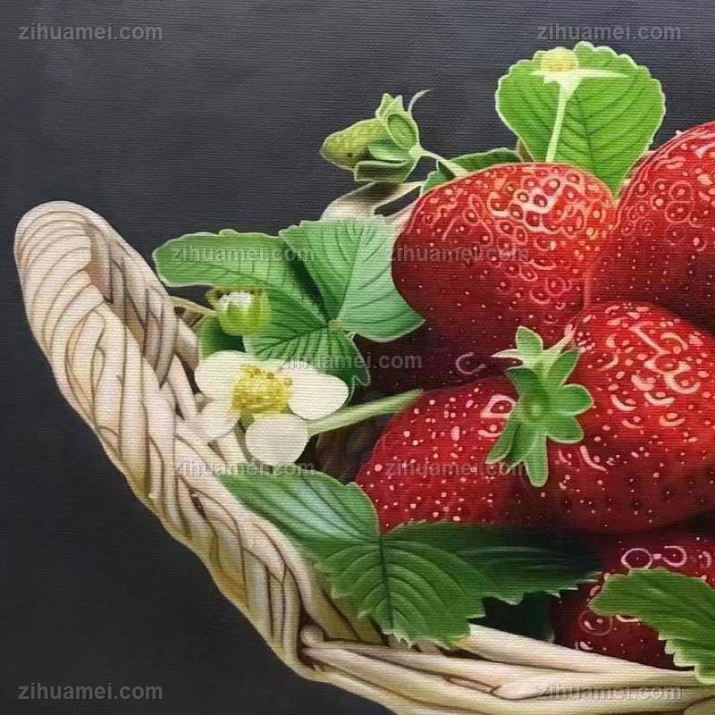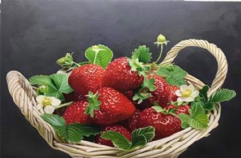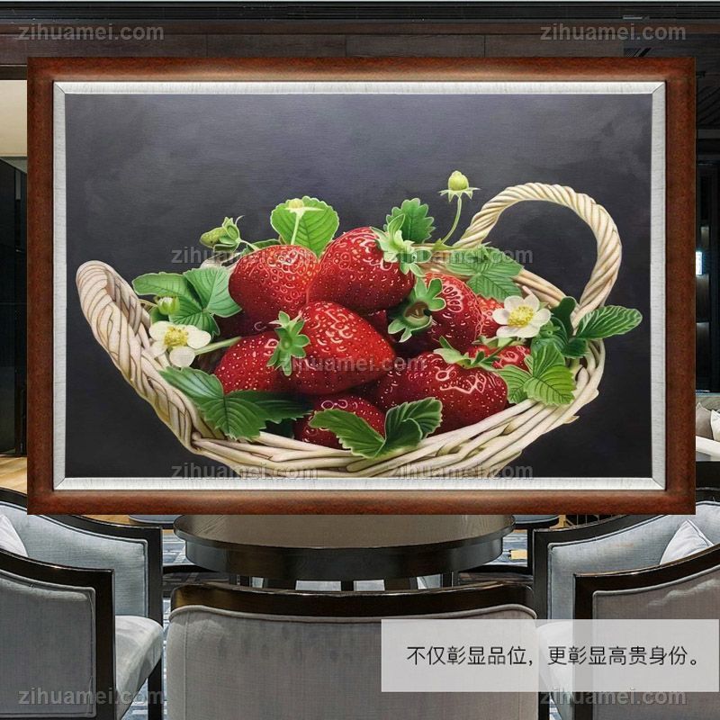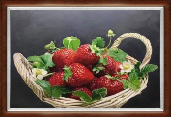 • Fine basket of strawberries pure hand-painted super realistic oil painting still life fruit oil painting solid wood frame