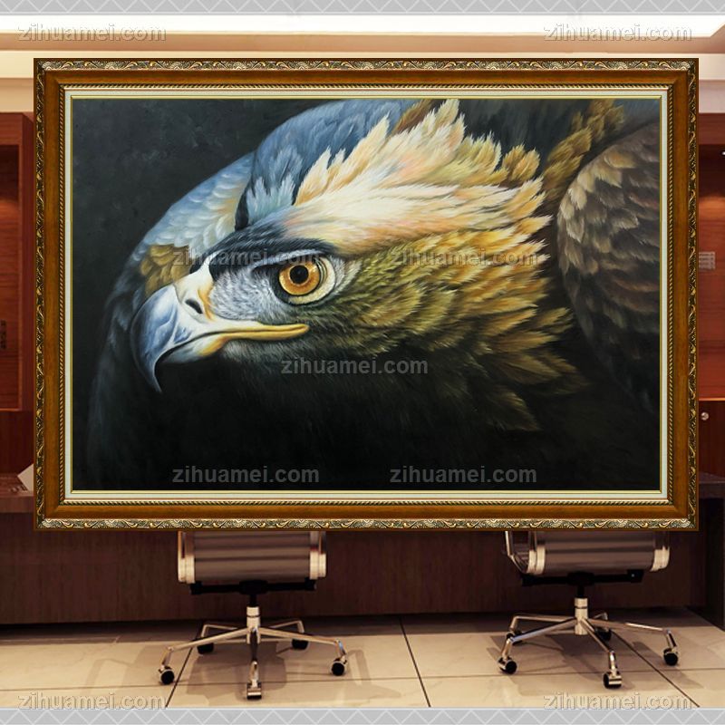 • European style animal oil painting pure hand-painted realistic Eagle picture is suitable for office hanging painting fine oil painting solid wood frame
