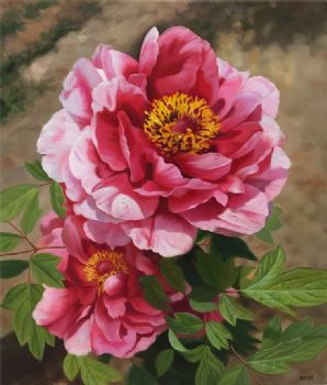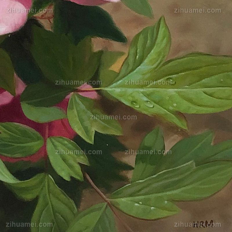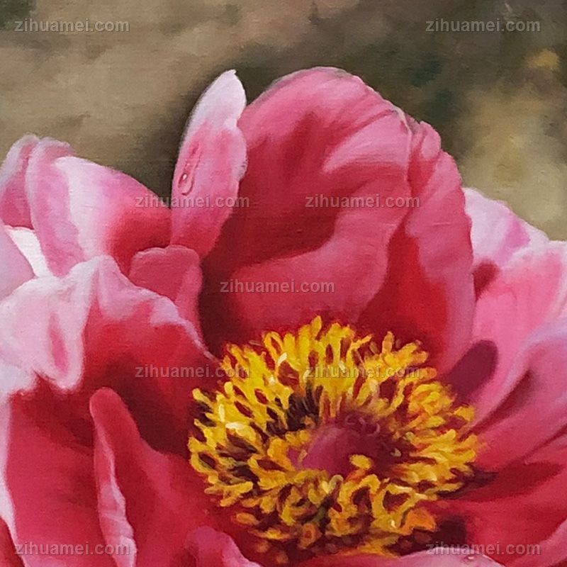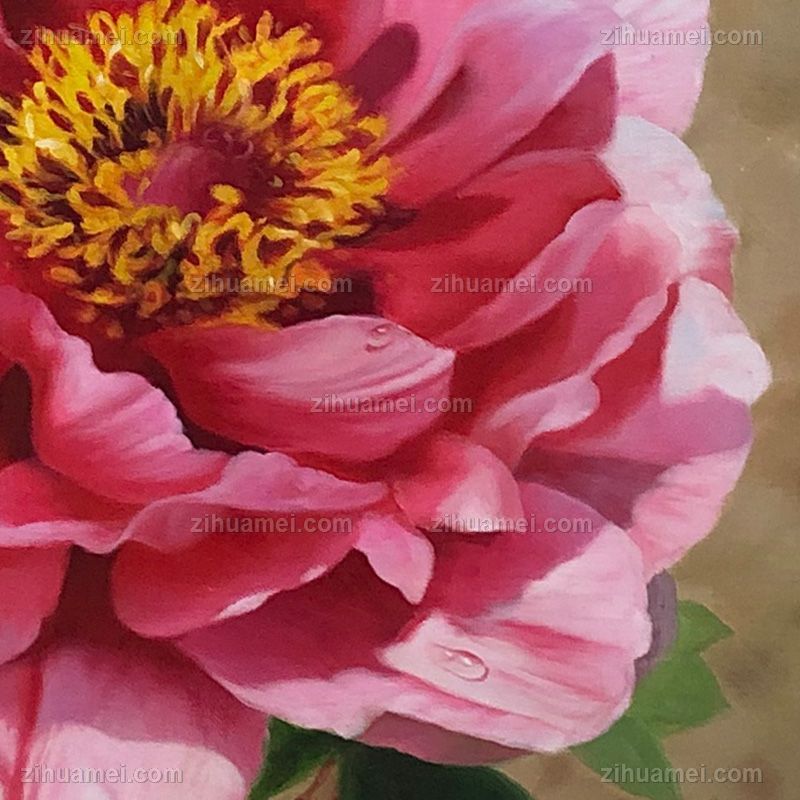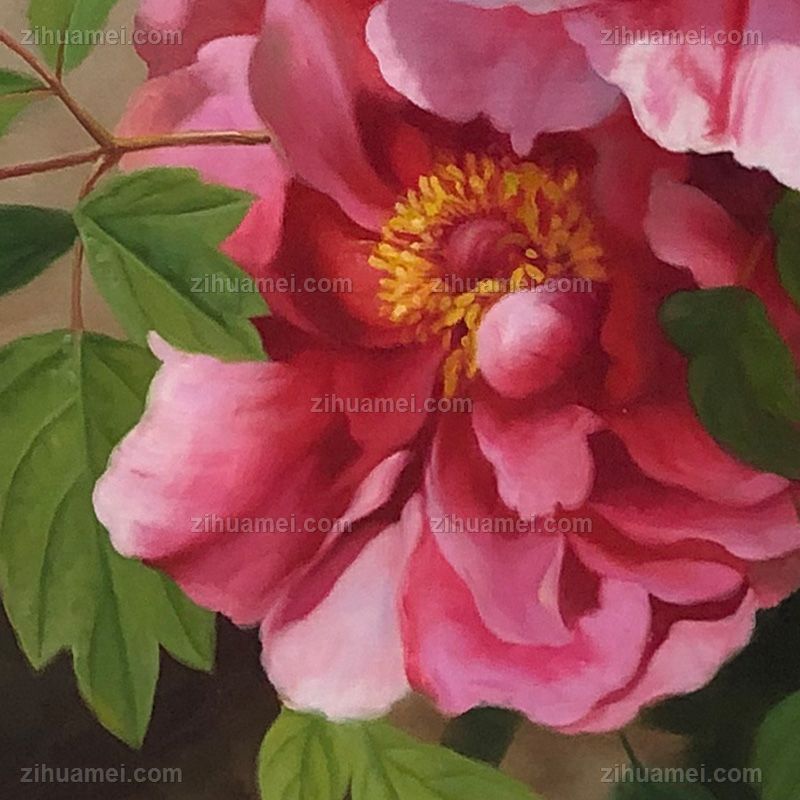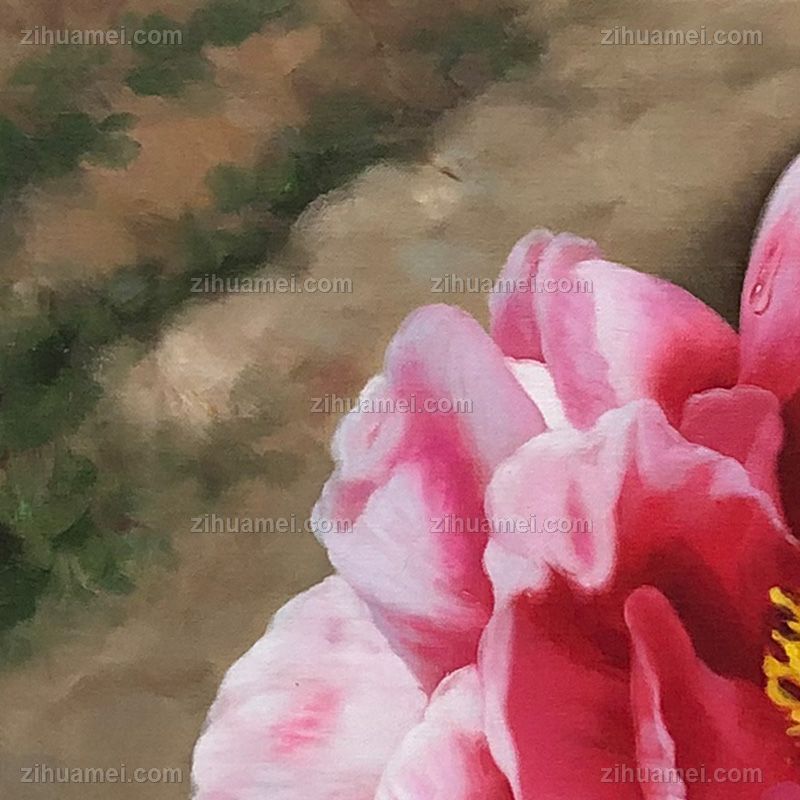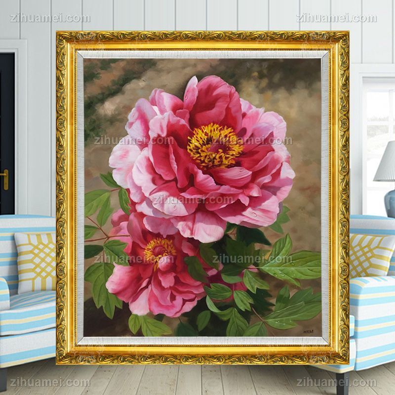 • New Chinese oil painting pure hand-painted flower oil painting super realistic peony flower solid wood frame boutique small flower oil painting