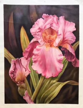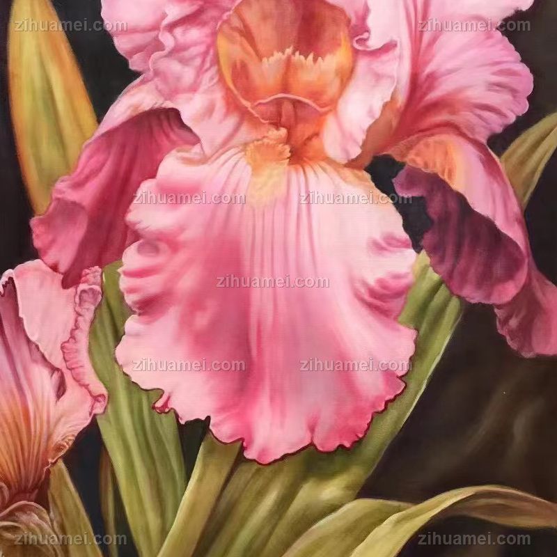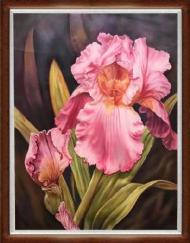 • Pure hand-painted flower oil painting Pink iris High quality beautiful flower solid wood frame