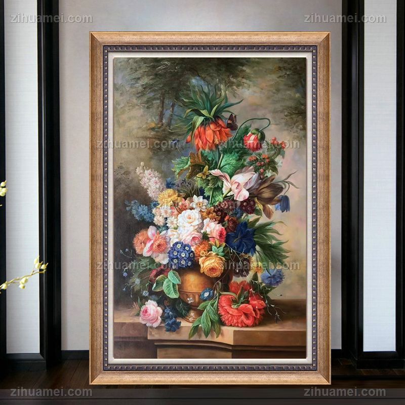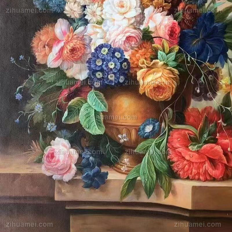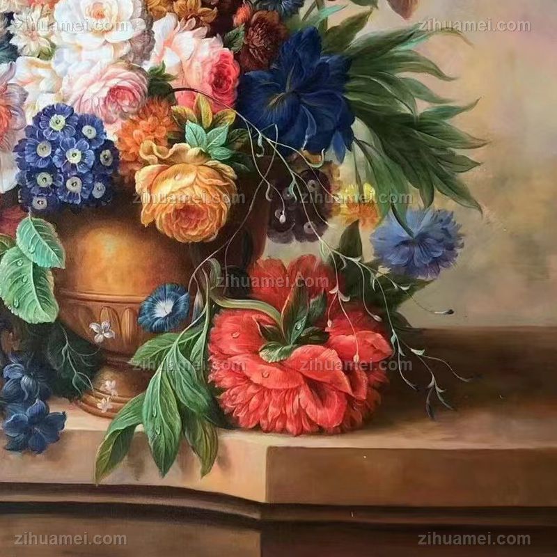 • Boutique European classical flower painting realistic flower painting on the table solid wood frame