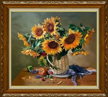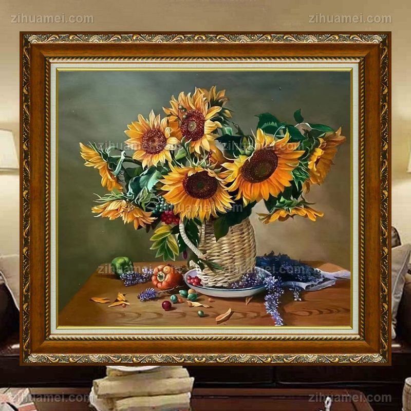 • Realistic still life sunflower flower oil painting pure hand-painted fine oil painting solid wood frame