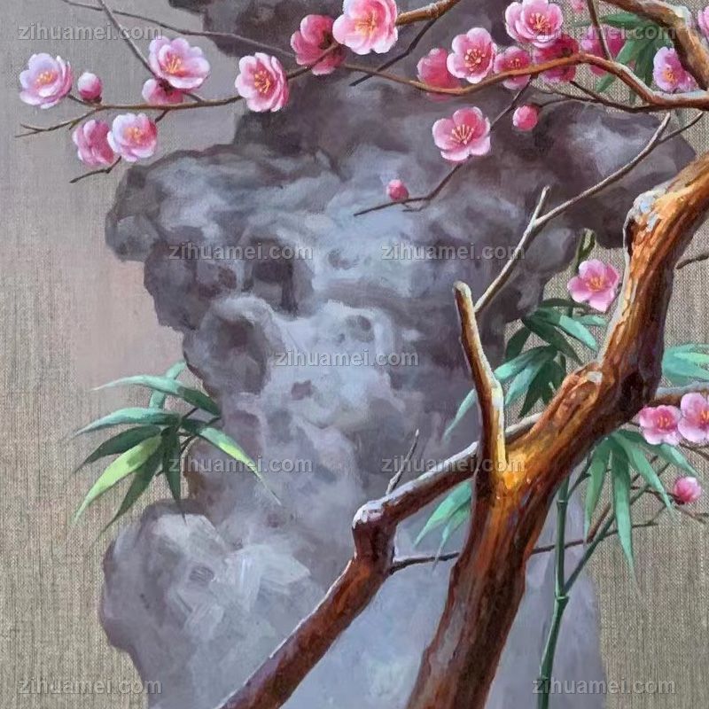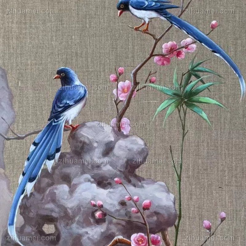 • New Chinese realistic flower and bird oil painting Magpie and plum flower pure hand-painted oil painting
