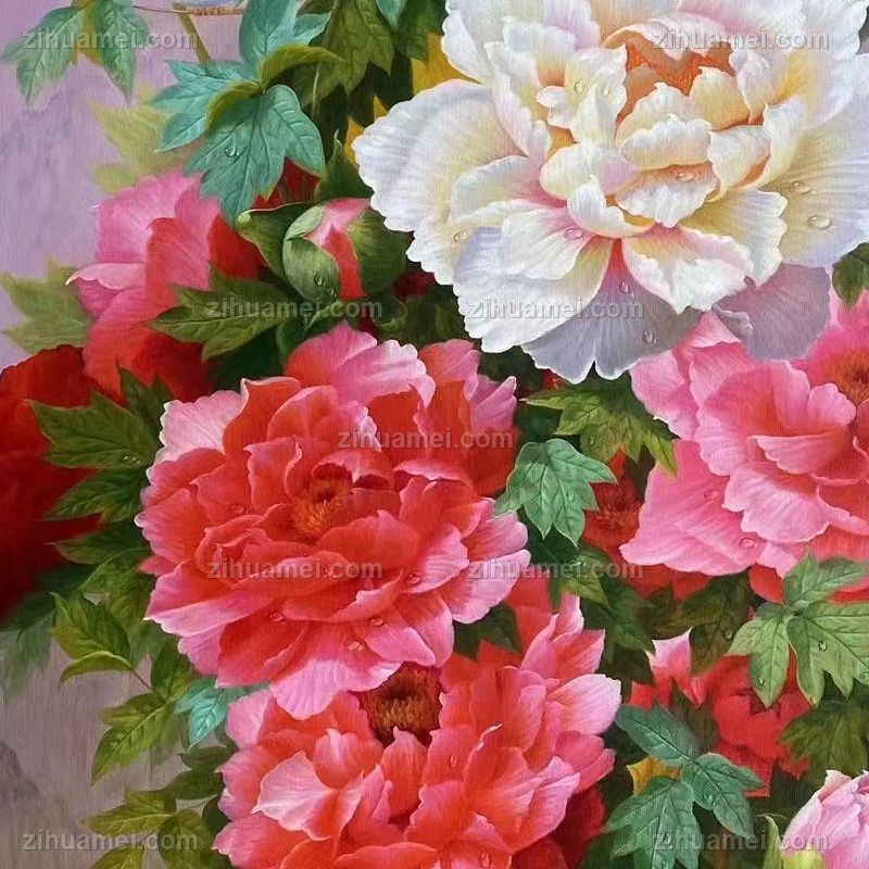 • Peony oil painting suitable for modern classic new Chinese style porch position