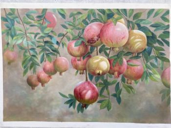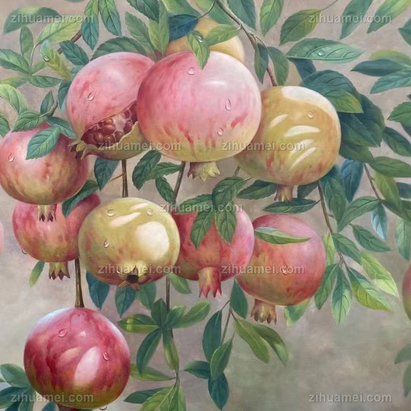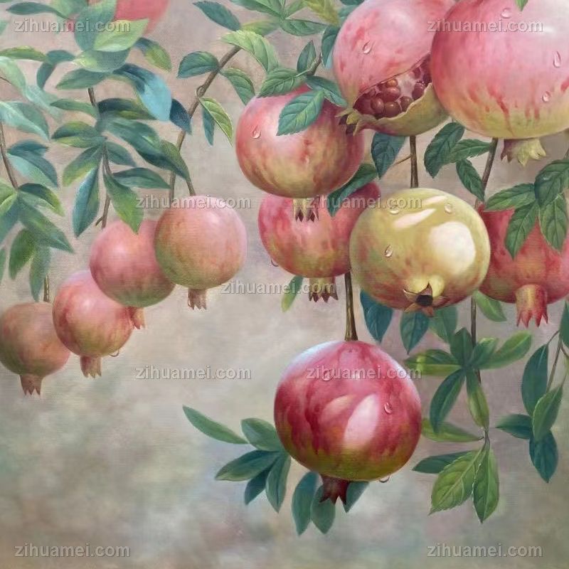 • Pomegranate Painting New Chinese Style Still Life Realistic Oil Painting Fruit Still Life Oil Painting Living Room Hanging Painting