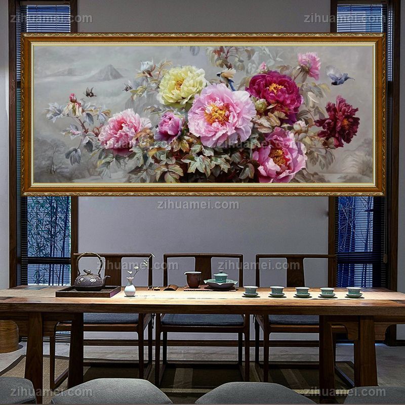 适合大厅客厅的纯手绘精品收藏牡丹油画