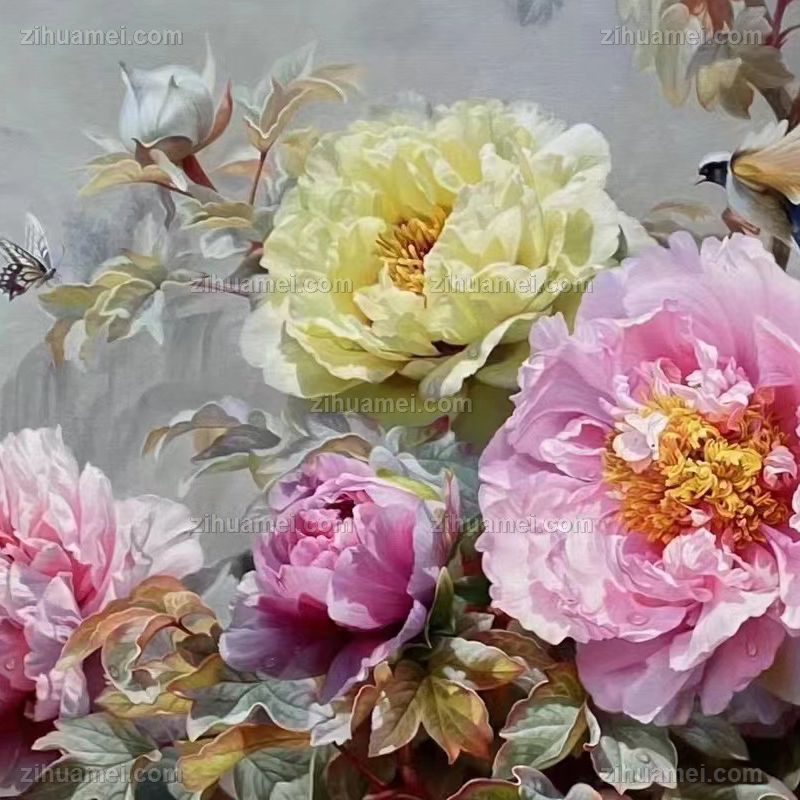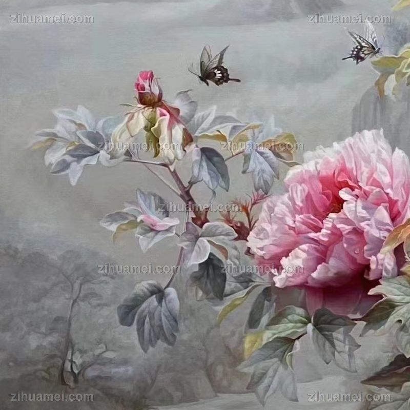 • Pure hand-painted fine collection of peony oil paintings suitable for the hall and living room