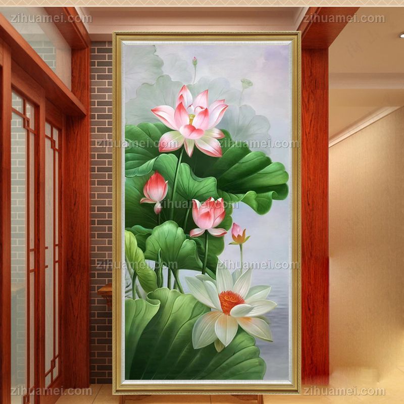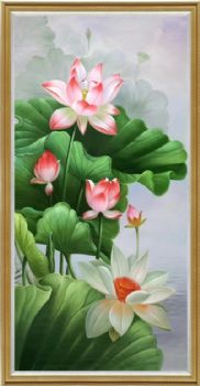 • Solid wood painting suitable for bedroom New Chinese style lotus flower oil painting