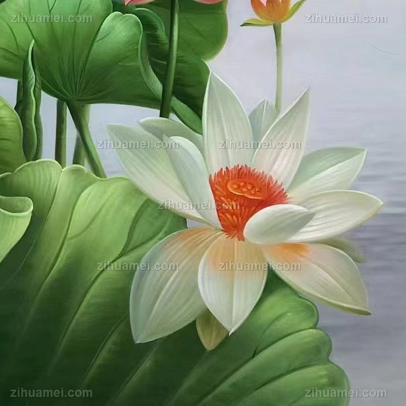 • Hand drawn flower oil painting, lotus pond landscape oil painting, porch oil painting