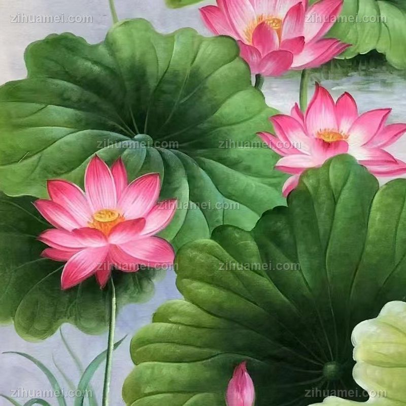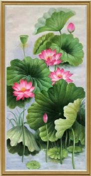 • Lotus flower oil painting suitable for porch corridors, pure hand-painted oil painting, solid wood frame