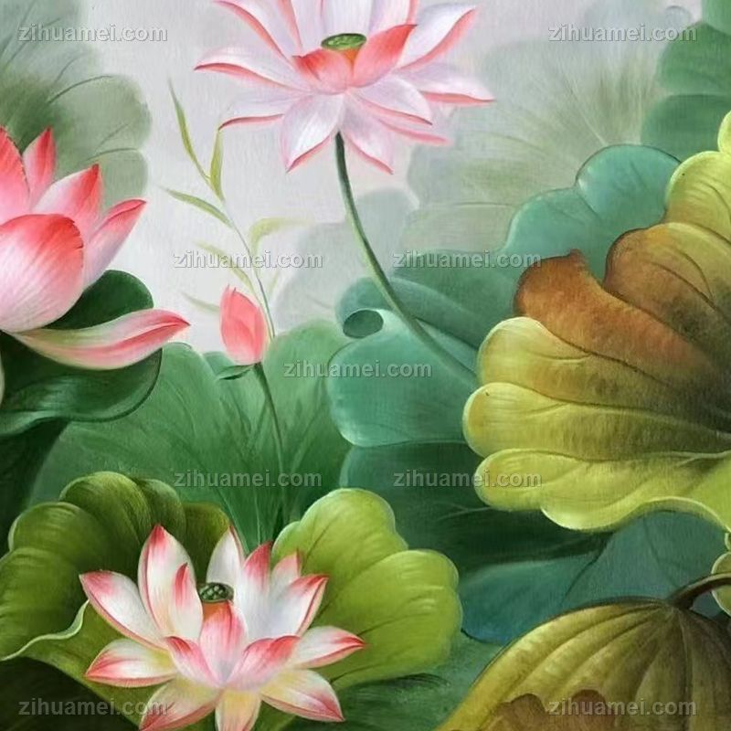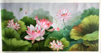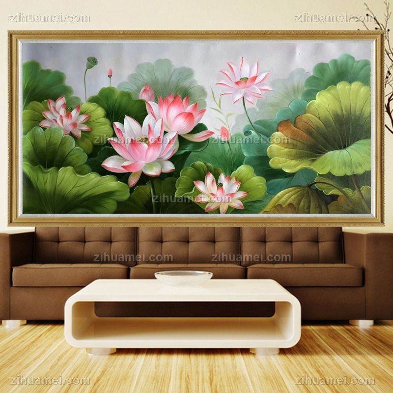 • Heqi Shengcai Jia Daye Da Xin Chinese Style Living Room Restaurant Hand-painted Lotus Oil Painting