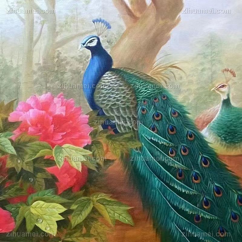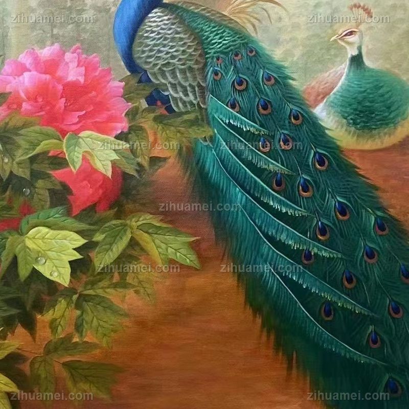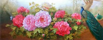• Flowers Bloom, Wealth, Happiness, Peacock, New Chinese Style Flower Peony Oil Painting, Pure Hand Painted Oil Painting