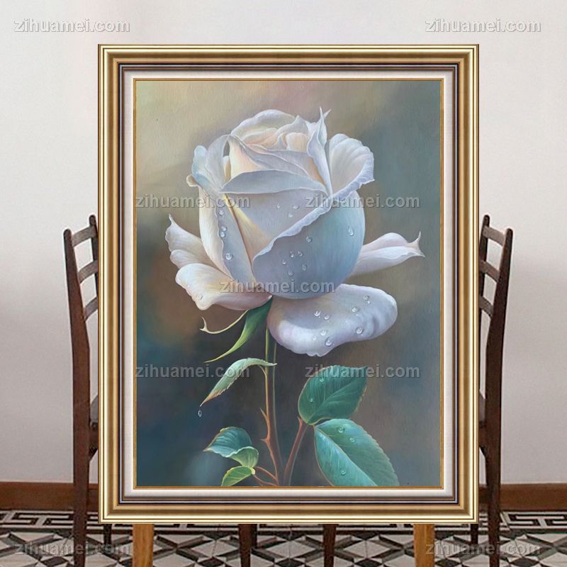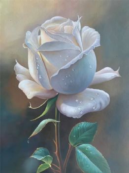 • White Rose Boutique Pure Hand Painted Realistic Oil Painting Flower Oil Painting Rose