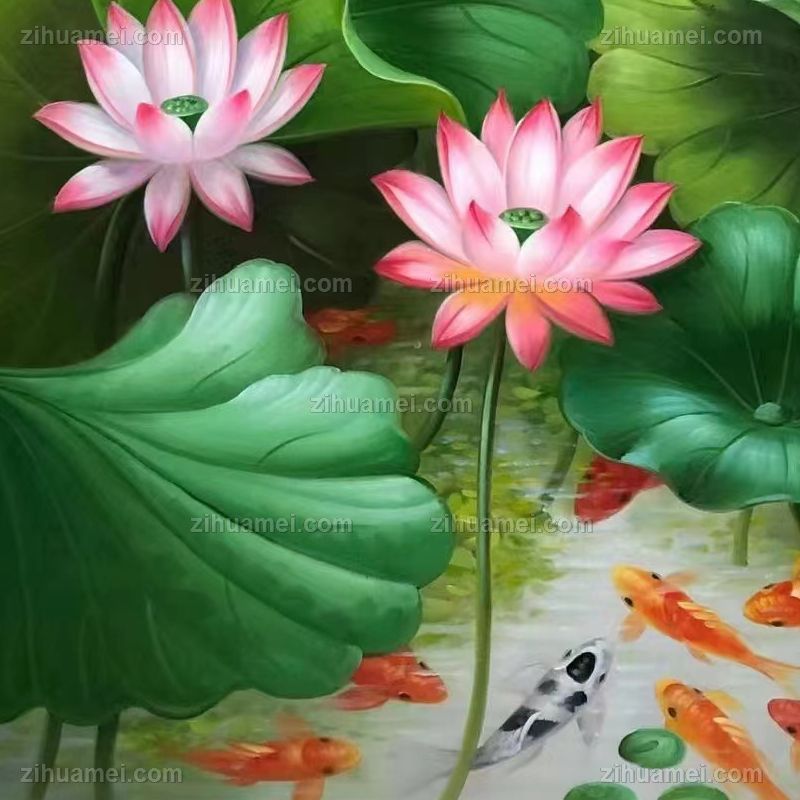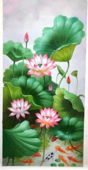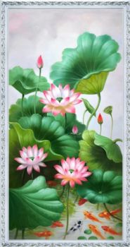 • New Chinese style lotus pond landscape oil painting with annual fish and carp oil painting hanging at the entrance