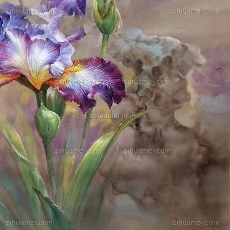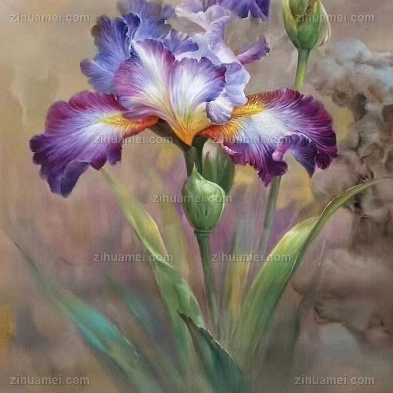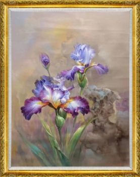 • Boutique purple iris flower, pure hand-painted realistic flower oil painting, iris tail flower, solid wood frame