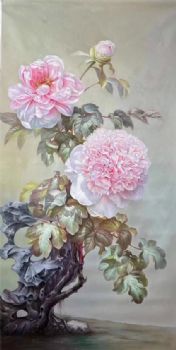 • Flower oil painting suitable for the entrance position, pure hand-painted oil painting, peony oil painting