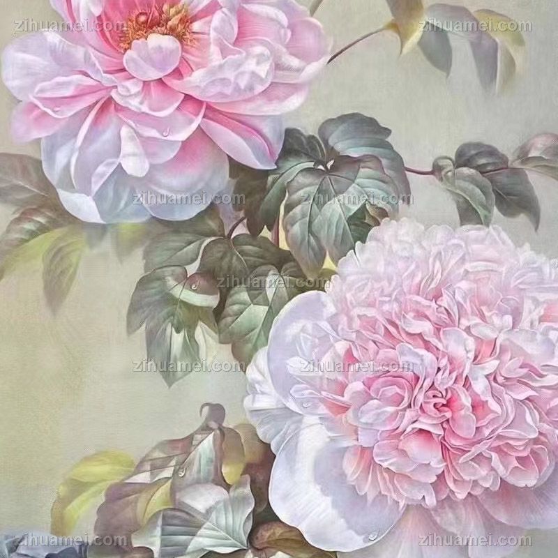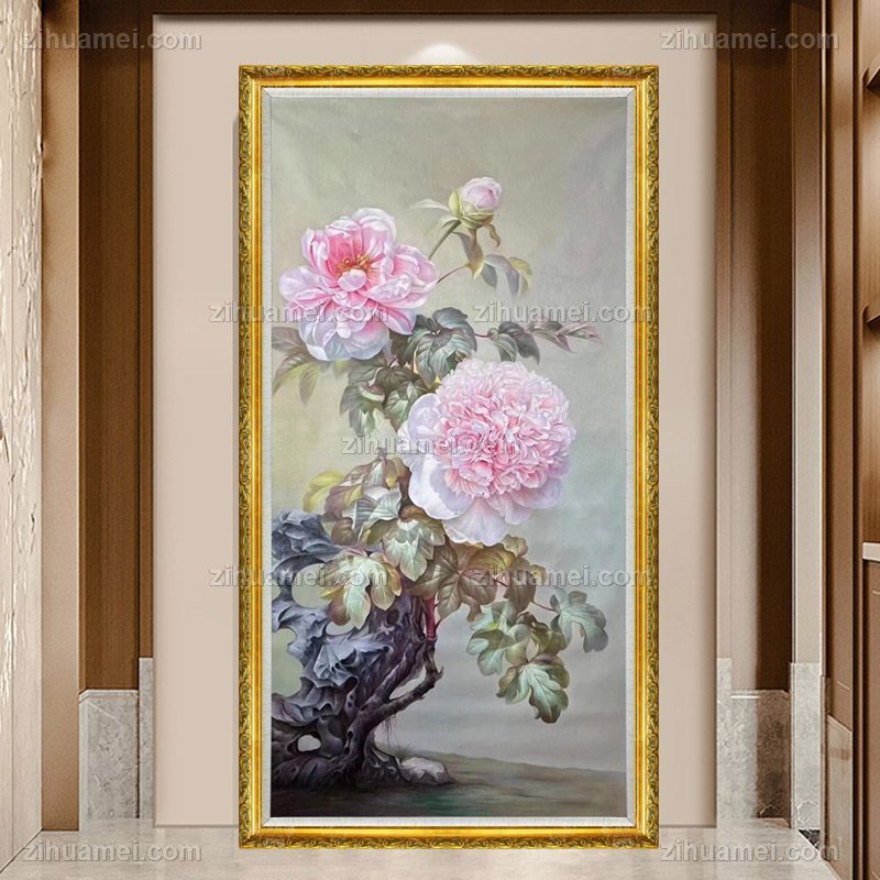 适合玄关位置的花卉油画纯手绘油画牡丹油画
