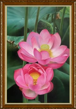 • Red Lotus Pure Hand Painted Realistic Flower Oil Painting Boutique Realistic Oil Painting Solid Wood Frame