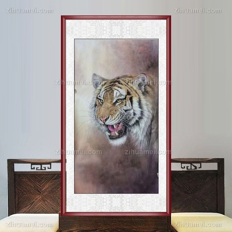• King's demeanor, pure hand-painted meticulous traditional Chinese painting, animal traditional Chinese painting, tiger and tiger head, solid wood frame