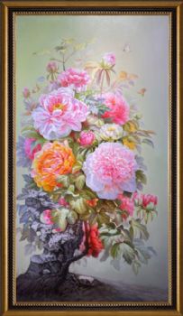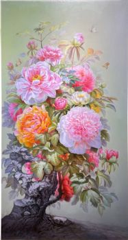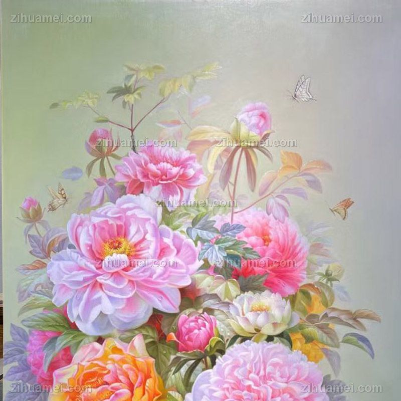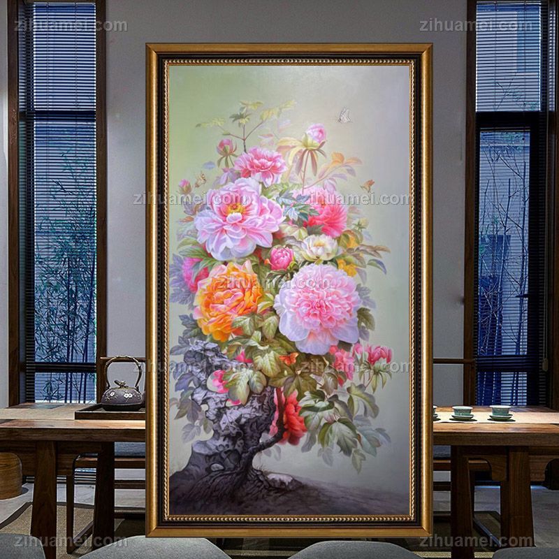 新中式玄关精品牡丹写实油画
